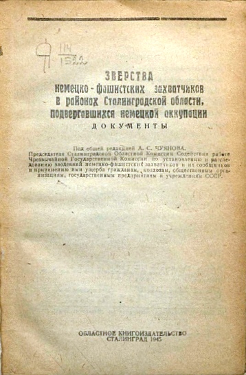 Указом Президиума Верховного Совета СССР от 2.11.1942 г. была учреждена Чрезвычайная Государственная Комиссия по установлению и расследованию злодеяний немецко-фашистских захватчиков и их сообщников и причиненного ими ущерба гражданам, колхозам, общественным организациям, государственным предприятиям и учреждениям СССР.